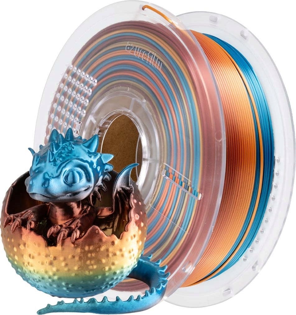PLA Silk od AzureFilm je snadno tisknutelný hedvábný filament, který, díky sametovému vzhledu a lesklému povrchu, vykouzlí výjimečné barevné efekty. Kombinuje typické vlastnosti PLA s atraktivním vzhledem, a proto je ideální volbou pro tisk dekorativních prvků – váz, figurek, doplňků nebo domácích potřeb.