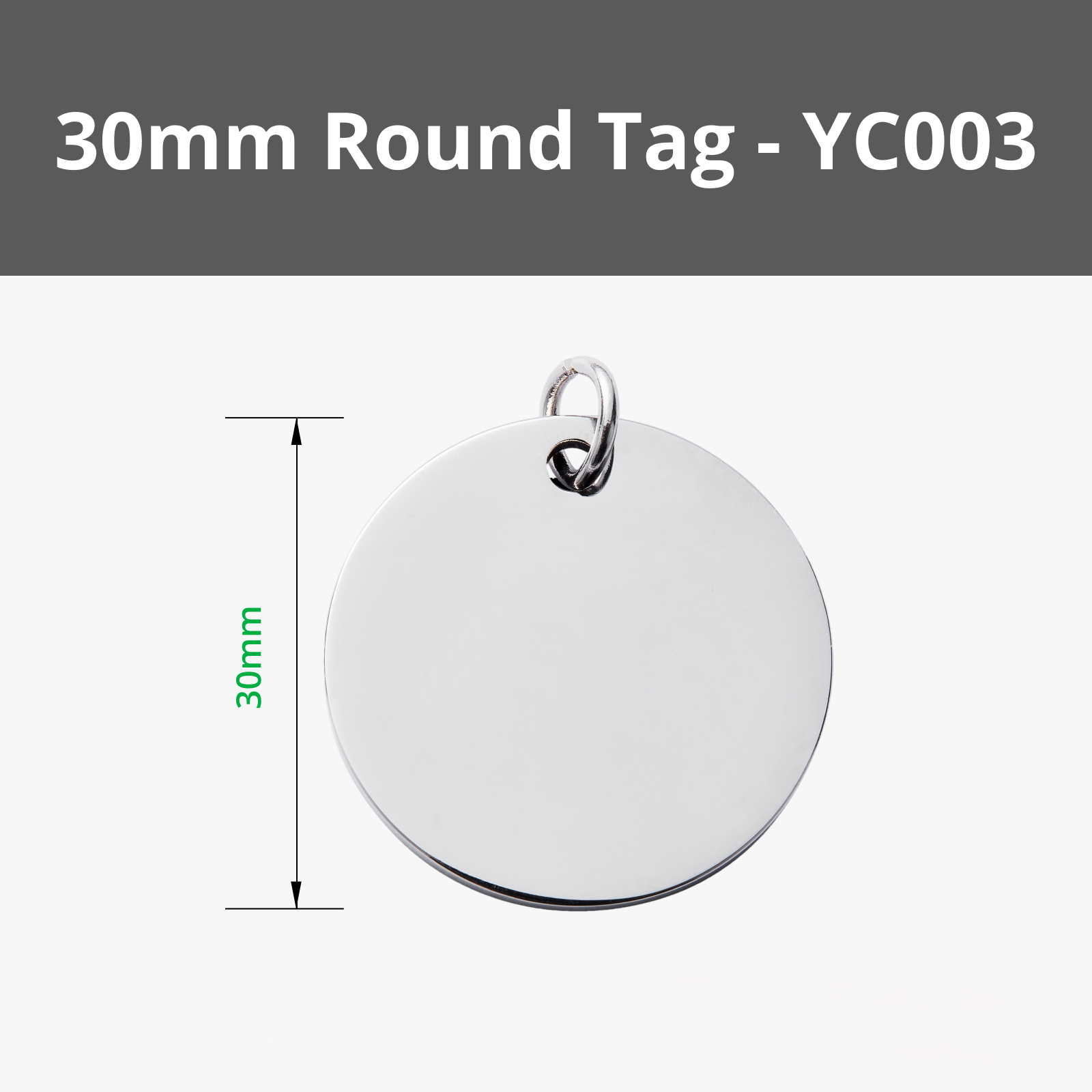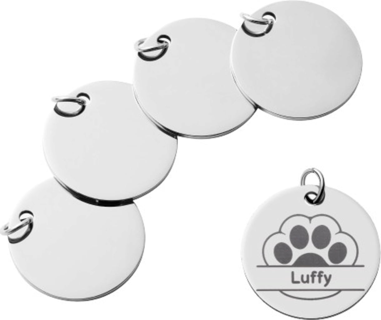 Obsah balení: 5 ks Round Stainless Steel Tag (malý: Ø20 mm, velký: Ø30 mm).