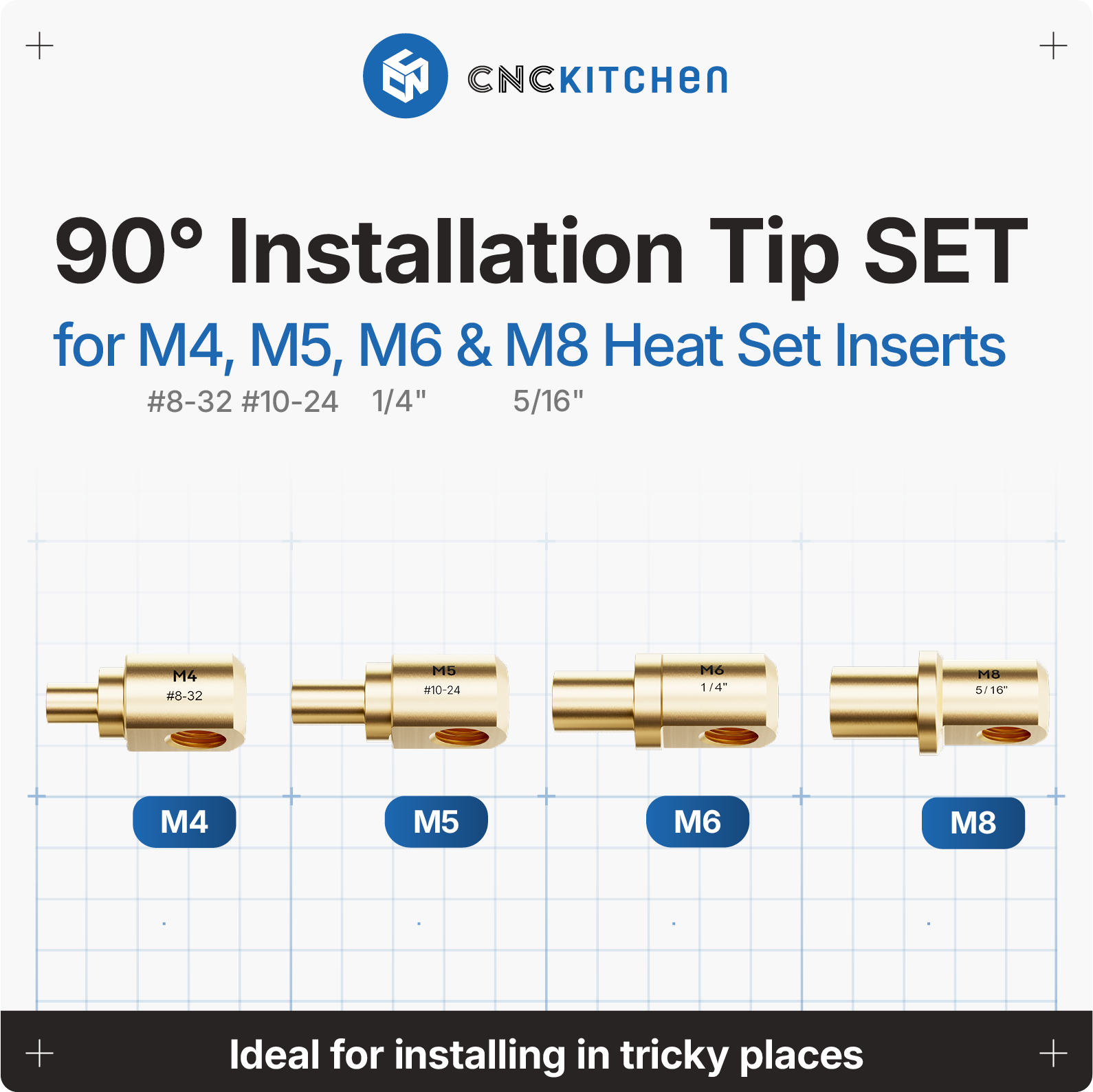 CNC Kitchen 90° Tavicí pomůcky pro M4-M8 závitové vložky