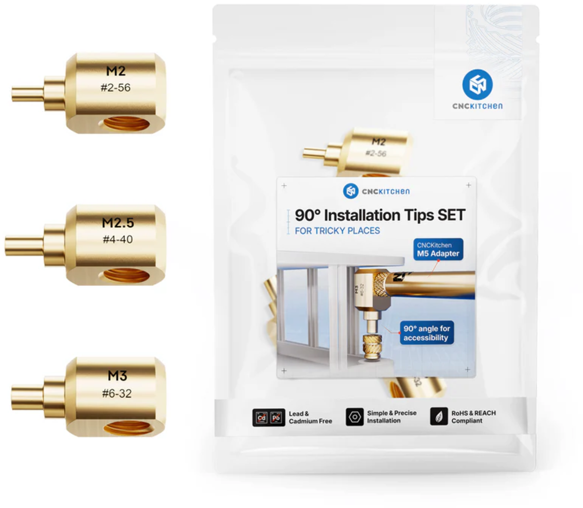 CNC Kitchen Tavicí pomůcky 90° pro závitové vložky M2-M3, 3/8" & G1/8"