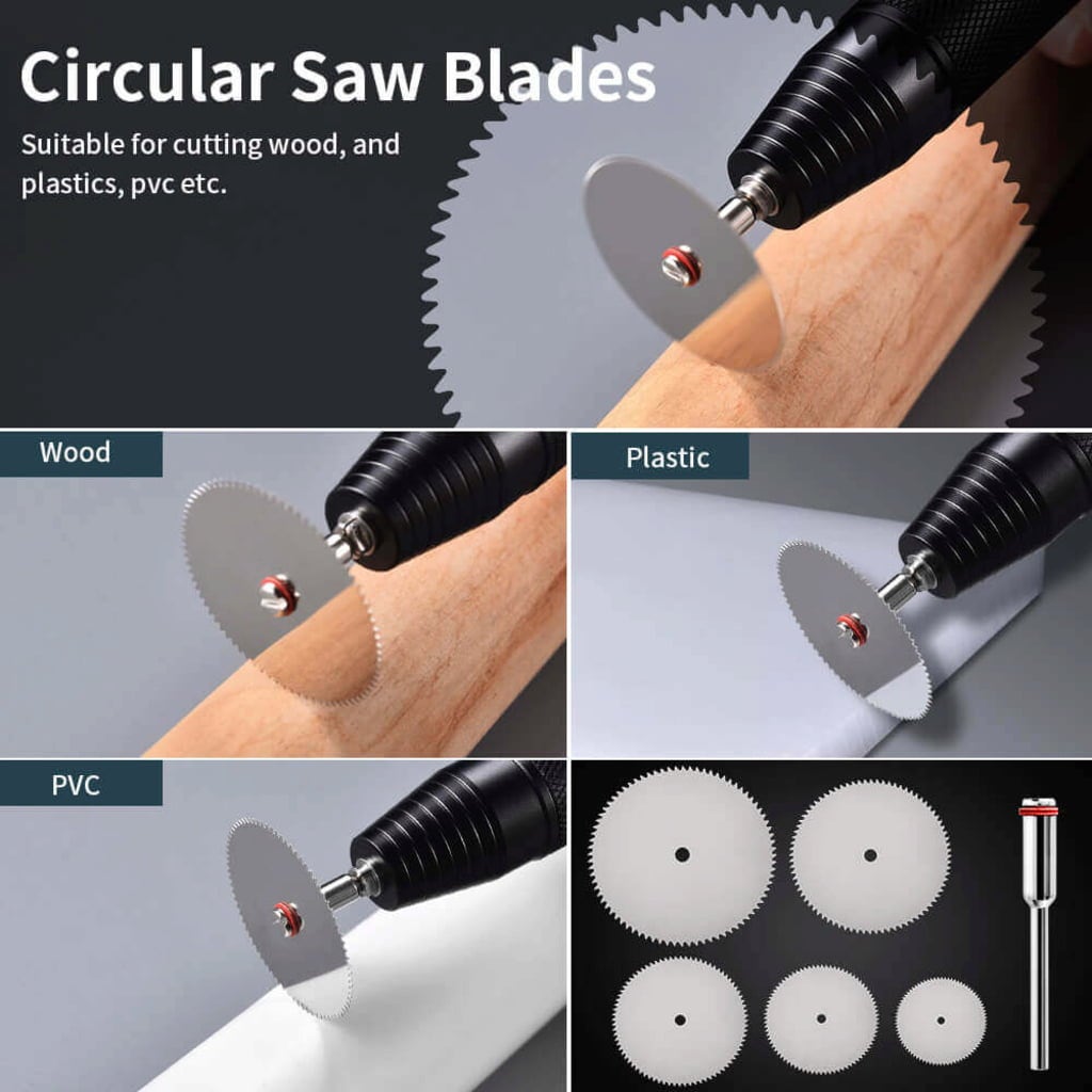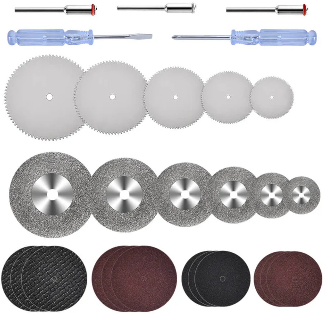 Hanboost Cutting Disc Set je ideálním doplňkem pro Vaši Rotary Tool a nabízí kompletní výběr kvalitních řezných kotoučů pro precizní a univerzální práci. V sadě naleznete HSS kotoučové pilové listy, diamantové řezné kotouče, pryskyřičné řezné kotouče i mini šroubováky – zkrátka vše, co potřebujete pro jemné a přesné řezání nejrůznějších materiálů.