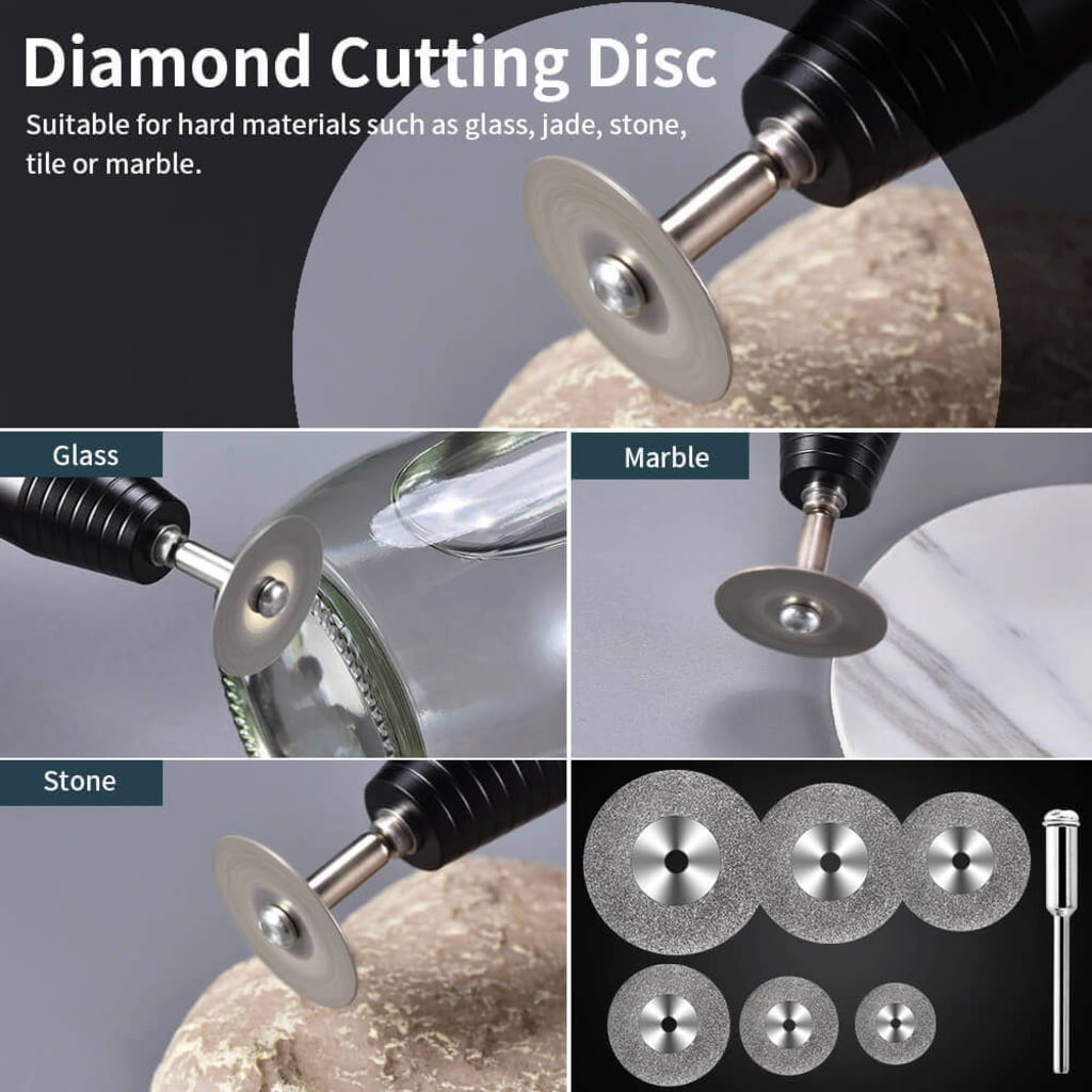 - Diamantové řezné kotouče – pro tvrdé materiály jako drahokamy, kámen, jadeit či mramor