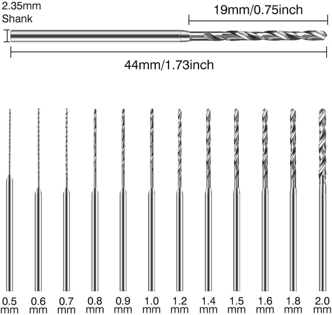 Hanboost Drill Bit Set je ideálním doplňkem k Vašemu Hanboost Rotary Tool a nabízí 12 přesných vrtáků různých velikostí pro širokou škálu materiálů. Díky průměru stopky 2,35 mm jsou vrtáky kompatibilní s většinou elektrických vrtaček, ručních vrtaček, gravírovacích a rotačních nástrojů.