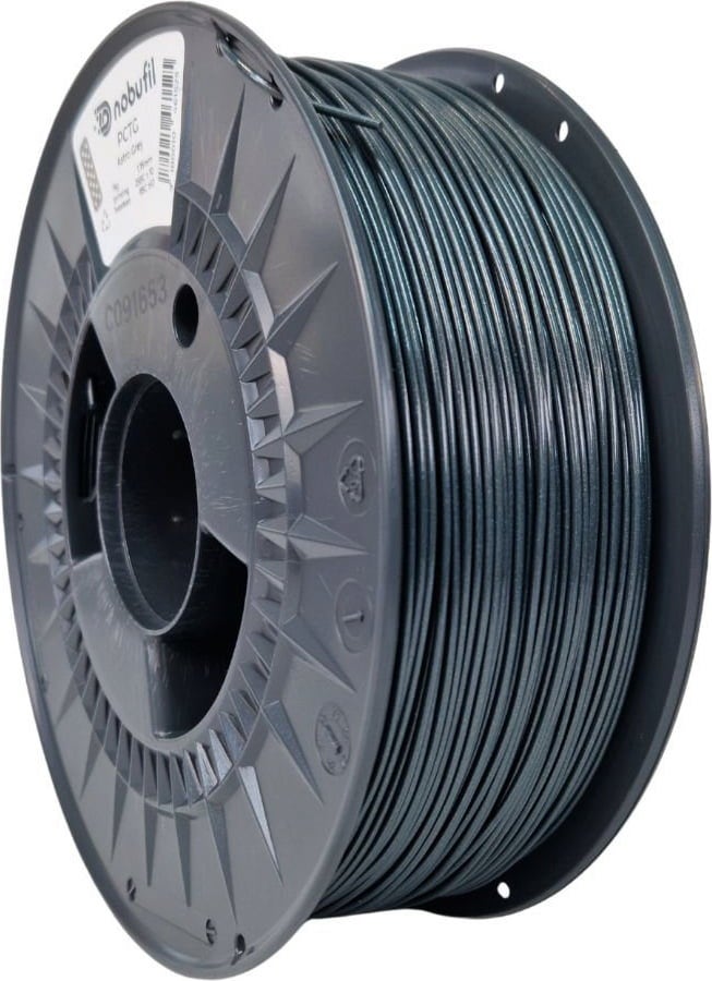 PCTG od Nobufil je filament vyrobený z recyklovaných plastů, které vznikají jako odpad při průmyslovém zpracování. Ve srovnání s filamenty PETG se tento polymer vyznačuje vyšší rázovou houževnatostí, díky čemuž je vhodný pro výrobu mechanicky namáhaných dílů.
