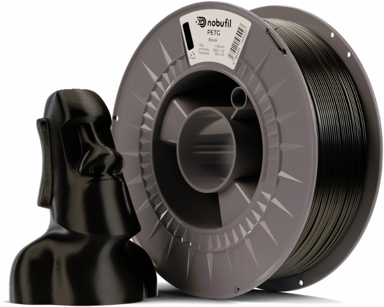 PETG značky Nobufil je recyklovaný filament vyrobený z plastového odpadu, který se vyznačuje vynikající přilnavostí vrstev, odolností a robustností. Materiál má vysokou odolnost vůči nárazu a má podobnou teplotní odolnost a pevnost jako ABS.