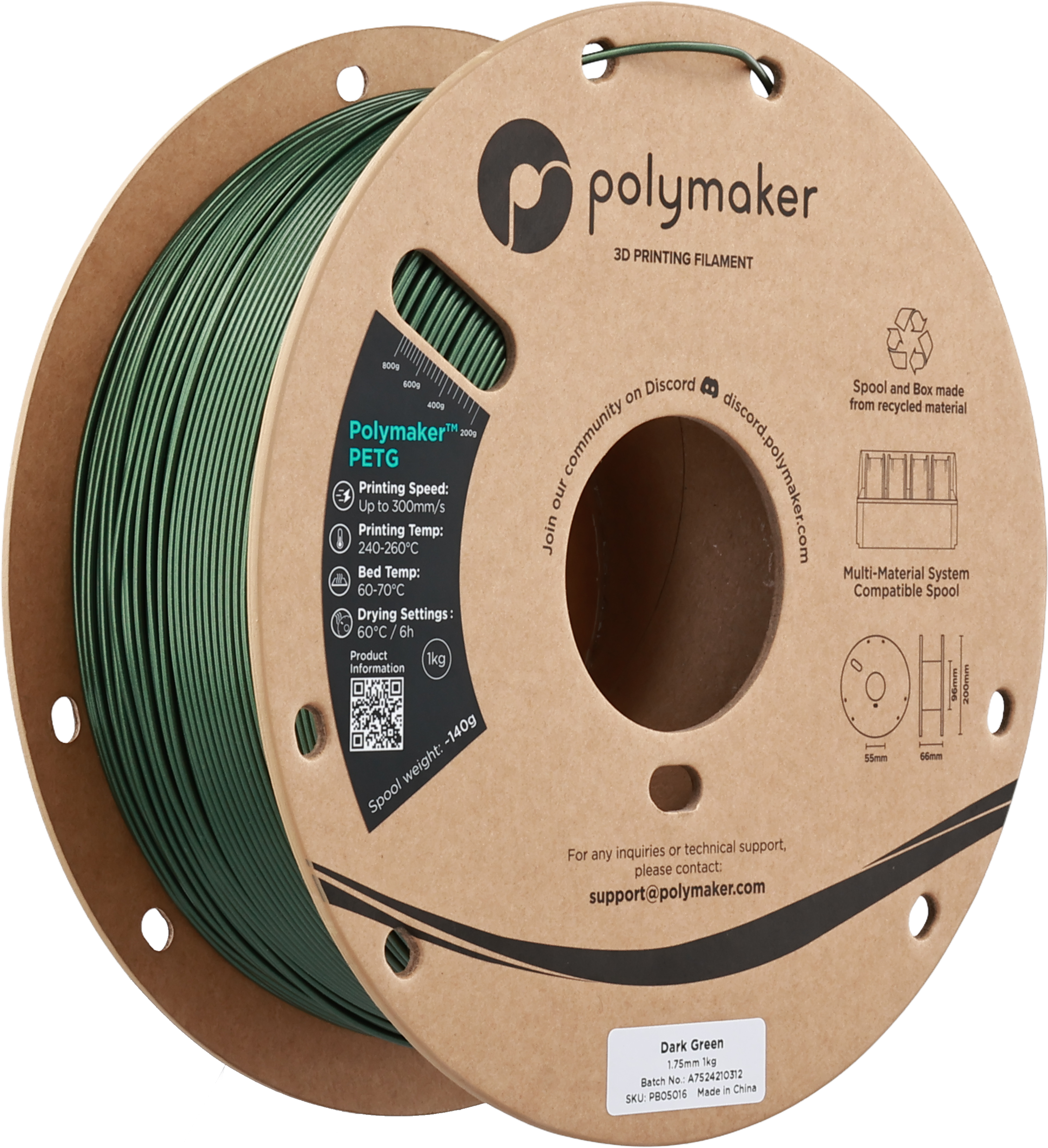 Polymaker PETG Dark Green, 1,75 mm / 1000 g
