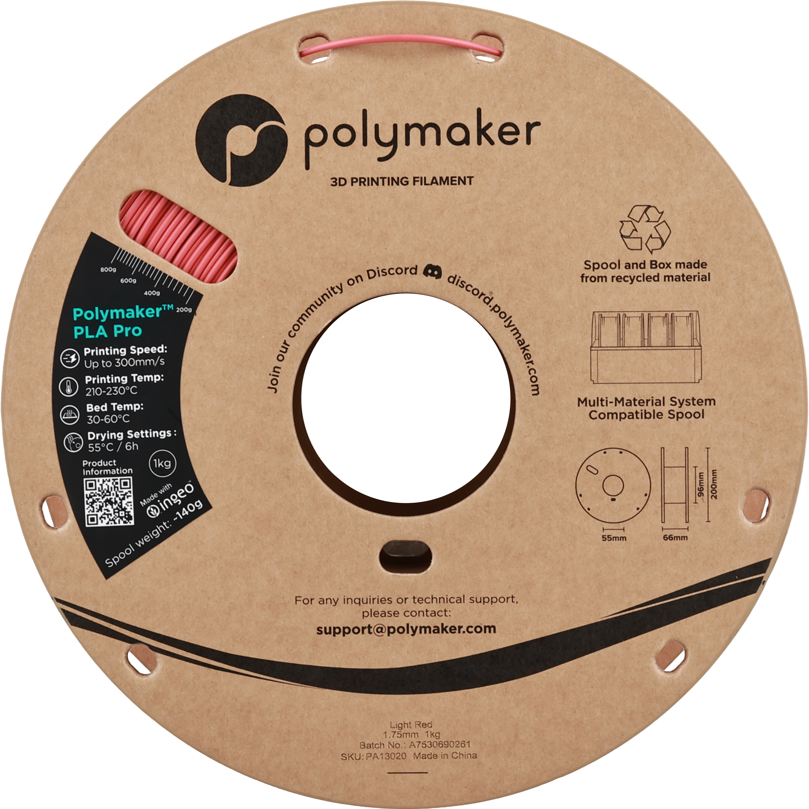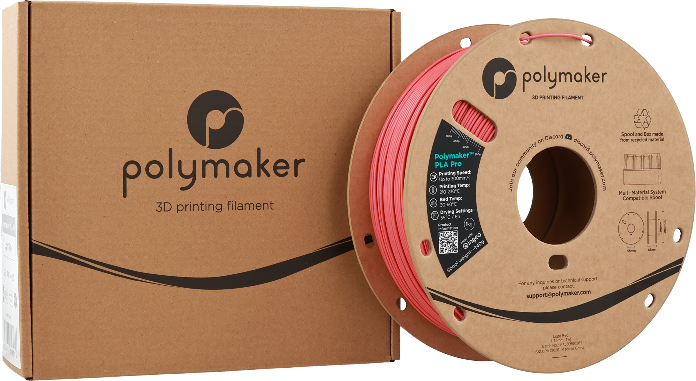 Polymaker PLA Pro Light Red, 1,75 mm / 1000 g