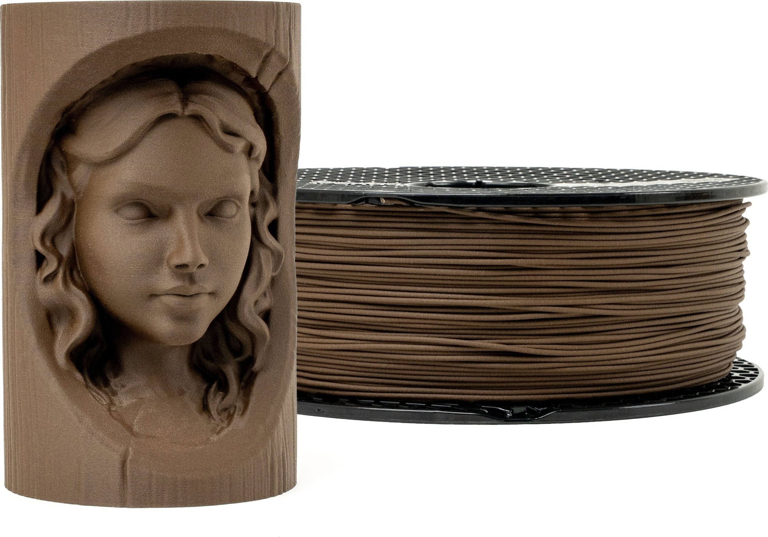Přírodní dřevěný filament s autentickým vzhledem a omakem v čokoládově hnědé barvě
