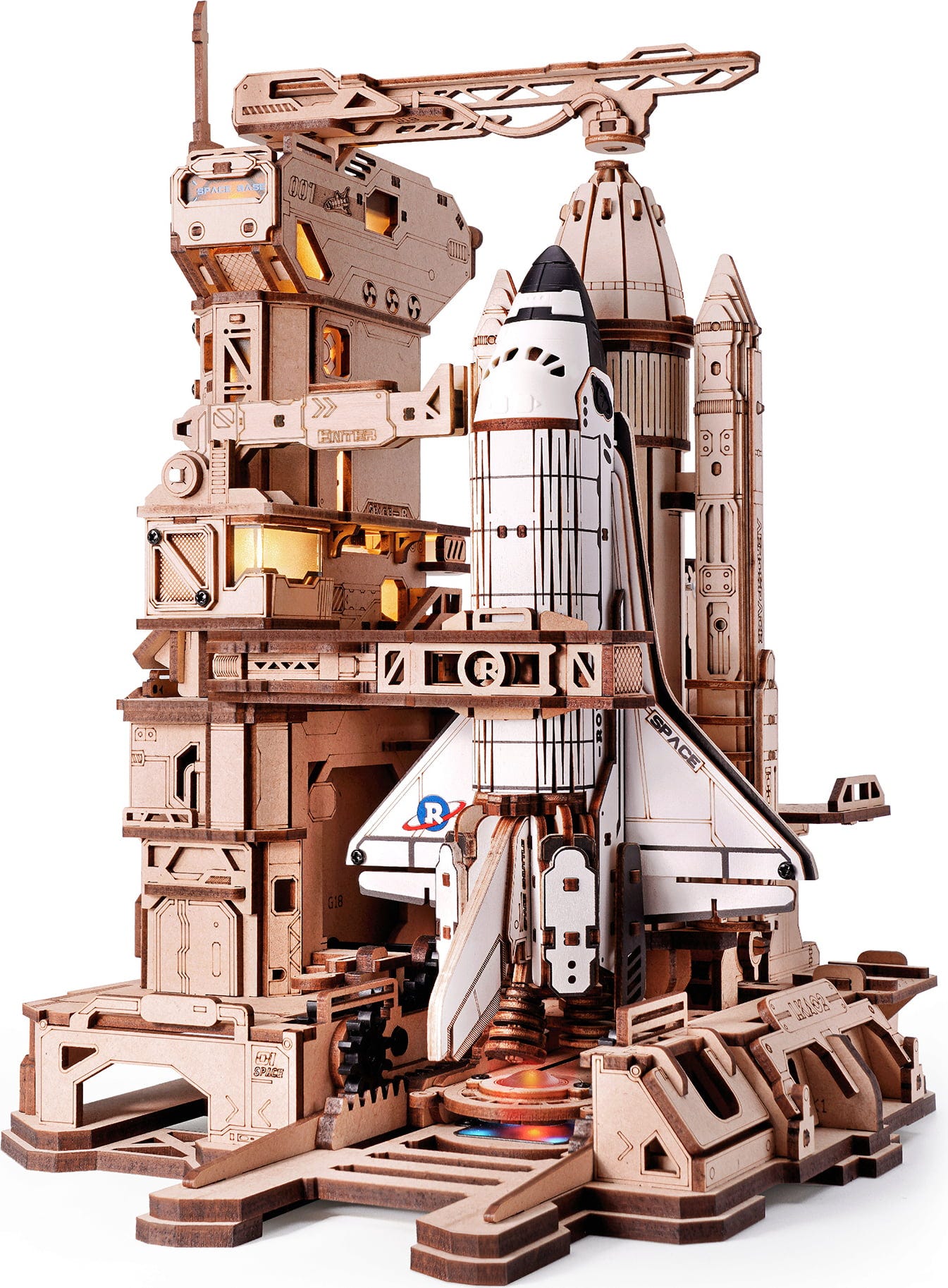 Kosmonautika na dosah: Přesný motor poháněný ozubenými koly pohybuje orbiterem pomalu a kontrolovaně z horizontální polohy do vertikální startovní pozice - přesně tak, jak probíhaly skutečné předstartovní operace. Jakmile je raketoplán vztyčen, přicházejí na řadu trojrozměrná robotická ramena: otáčejí se, uzavírají a uvolňují orbiter.