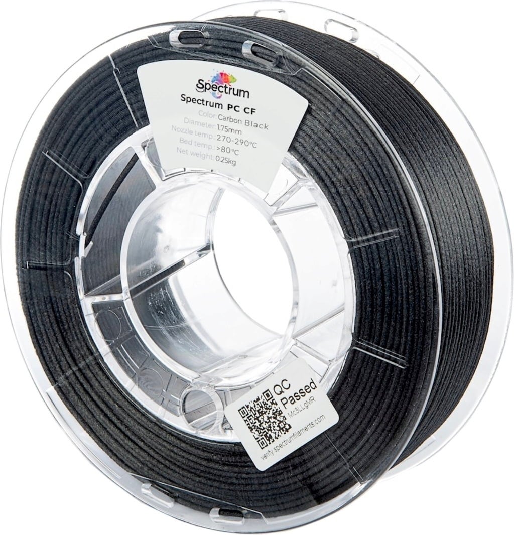 PC CF od Spectrum vychází z osvědčeného složení PC 275 a je vyztužen 10 % uhlíkových vláken. Výsledkem je materiál, který se vyznačuje působivou mechanickou pevností, vysokou tuhostí a mimořádnou odolností proti nárazu a je ideální pro náročné projekty v průmyslu a technologiích.