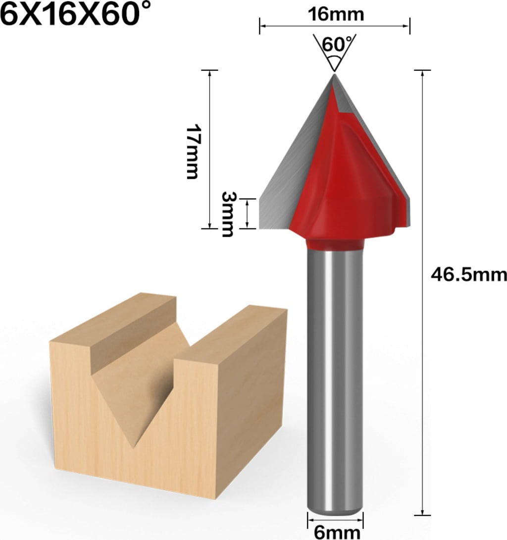 V-drážkovací fréza 60° od společnosti Two Trees pro zpracování dřeva. Fréza je vyrobena z wolframové oceli a nemá žádný povlak.