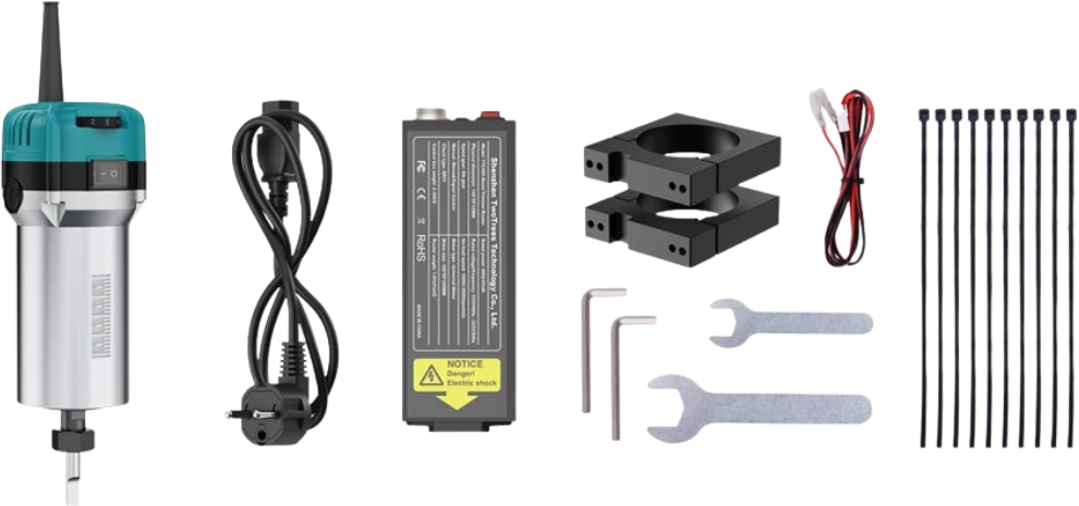 Frézka je vybavena 800 W High Speed Air Cooled vřetenovým motorem. Ten je vhodný pro širokou škálu aplikací, aniž by došlo k nadměrnému zatížení zařízení.